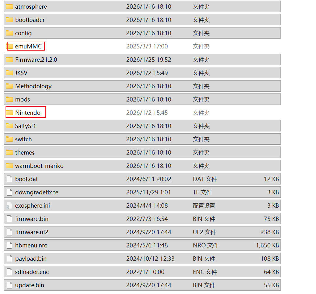 删除Nintendo和emuMMC以外的文件夹(或者JSKV也可以留着)
