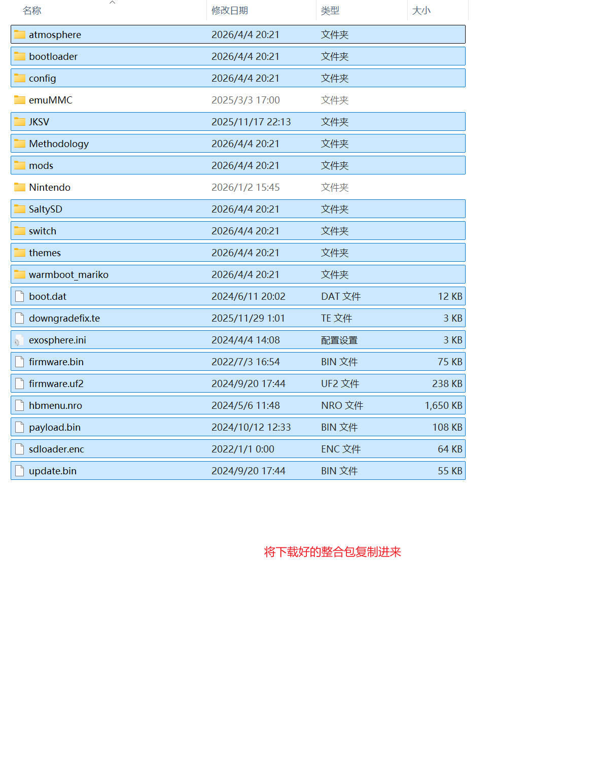 复制下载好的大气层整合包